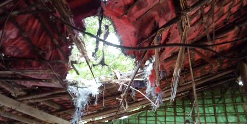 The shop, in the ancient city’s Nyaung Pin Zay ward, was struck by the shell at around 4 p.m. The roof of the food shop was blown off and some cooking pots were damaged in the shelling.