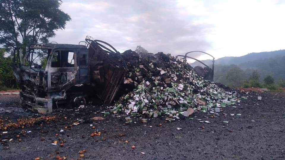 “Rebels began to stop 12-wheel trucks near Shu Khin Tha yesterday [September 3]. They pointed their guns at us and ordered us to line up our vehicles. They tried to use them to block the highway. They took our phones and wallets before they set our vehicles on fire,” truck driver Ko Thura Aung told SHAN.