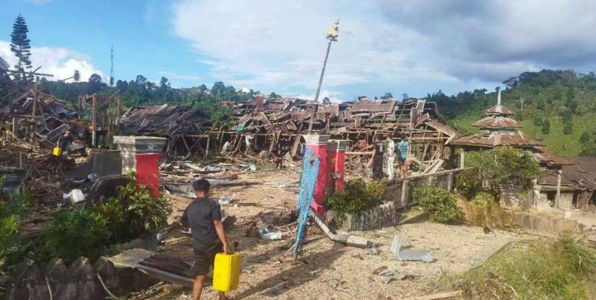 Similarly, junta aircraft dropped two 500-pound bombs on Pangthapyay Village near Monglon Town in Kyaukme Township in an unprovoked attack, damaging a monastery and destroying around 20 houses, the TNLA stated.