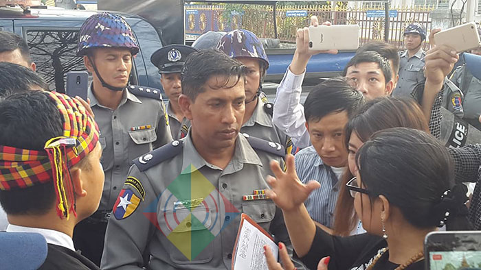 “They wanted to file three charges against us, but there was lack of evidence for the other two charges so we were charged under the Peaceful Assembly and Peaceful Procession Law. No matter what law we have been charged with, we will face it,” said Ma Sut Seng Htoi, in-charge of the youth protest camp.