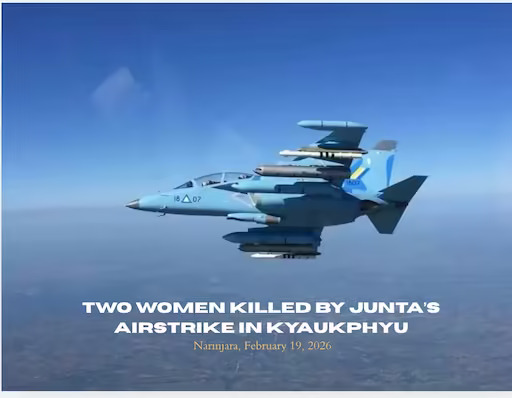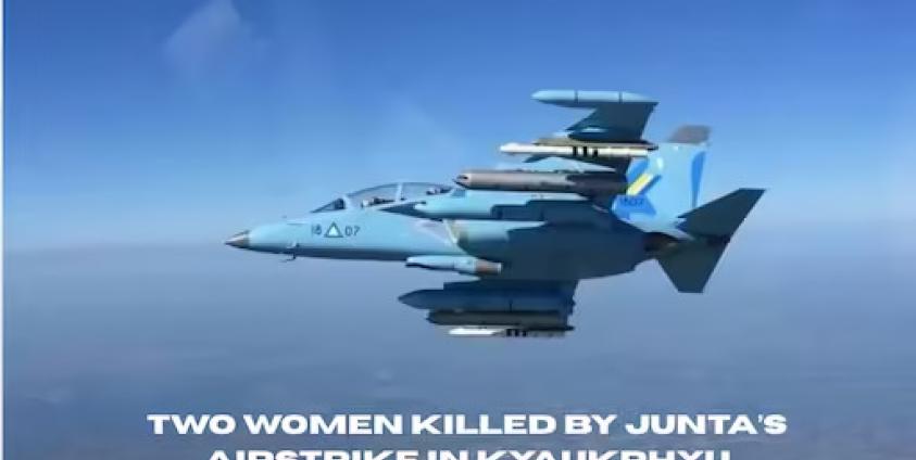 Thinzar Nwe — Two women were killed in a junta airstrike on Mee Kyung Yee Thout village under Kyaukphyu township of Rakhine State on Tuesday. The air force personnel bombed the village with a jet fighter at 4 pm on 17 February, said a local villager.