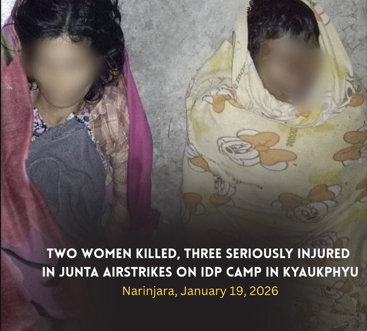 The deceased women have been identified as Daw Ma San Shwe, aged 54, from Pyate Village, and Daw Khin San Oo, aged 40, from Min Thak Taung Village in Kyaukphyu Township.