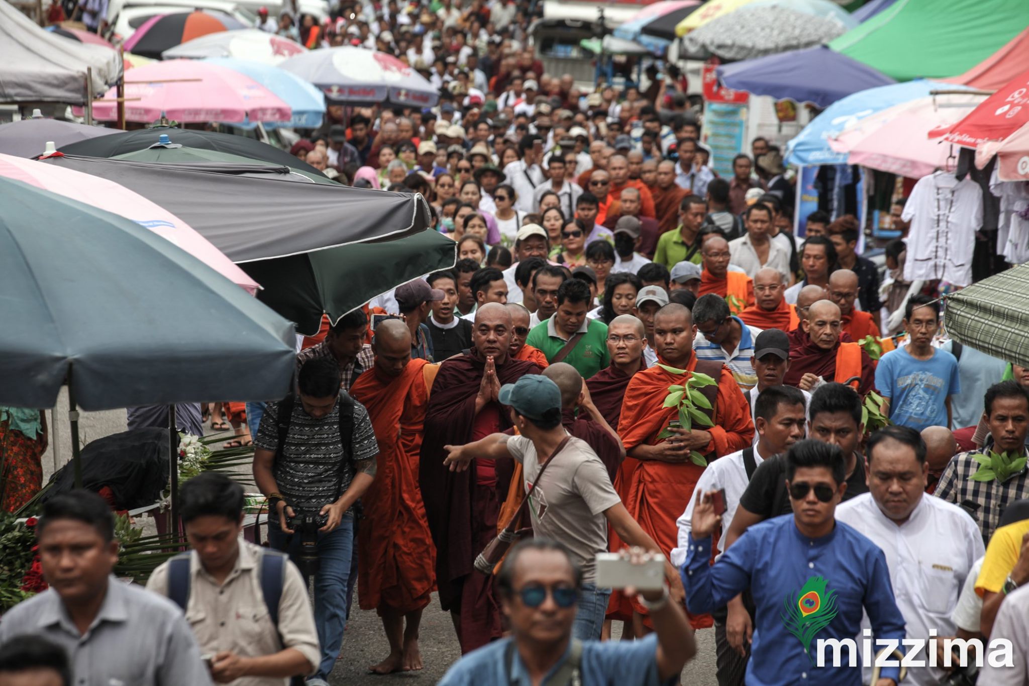 Supporters of Nationalist Buddhist monk Wirathu, gather near the Shwedagon pagoda in Yangon on 30 May 2019. Photo: Thura/Mizzima