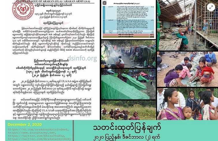 The United League of Arakan (ULA)/ Arakan Army (AA) held an online discussion with the Tatmadaw on the IDP affairs, and the holding of elections in the canceled areas, according to the statement by the ULA/AA, on December 2.