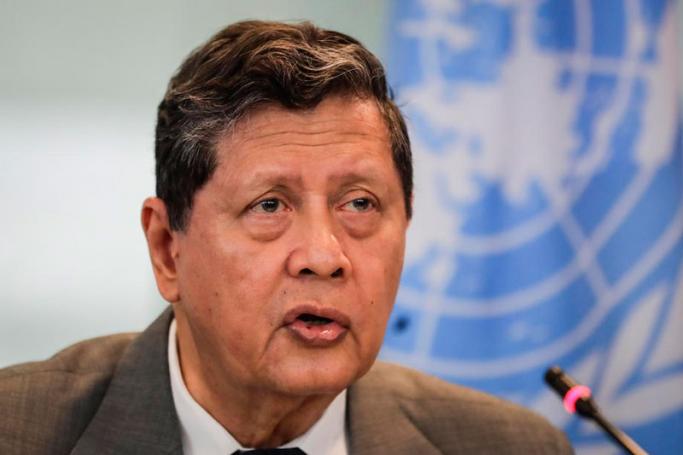 The Chairman of United Nations (UN) fact-finding mission on Myanmar, Marzuki Darusman of Indonesia talks to the media during a press conference at the UN office in Jakarta, Indonesia, 05 August 2019. Photo: Mast Irham/EPA