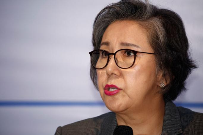 United Nations Special Rapporteur on the situation of Human Rights in Myanmar, South Korean university professor Yanghee Lee, addresses the media in Dhaka, Bangladesh, 25 January 2019. Photo: Monirul Alam/EPA