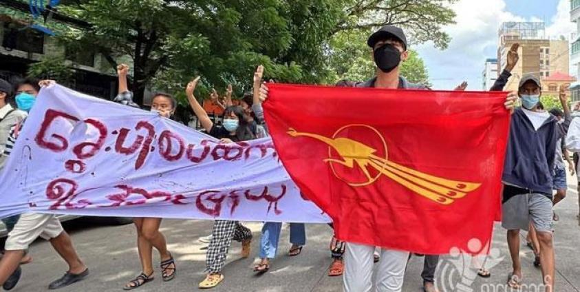 Five underage students were violently arrested by junta troops after an anti-military demonstration in Yangon’s Thingangyun Township, Yangon on 30 May.