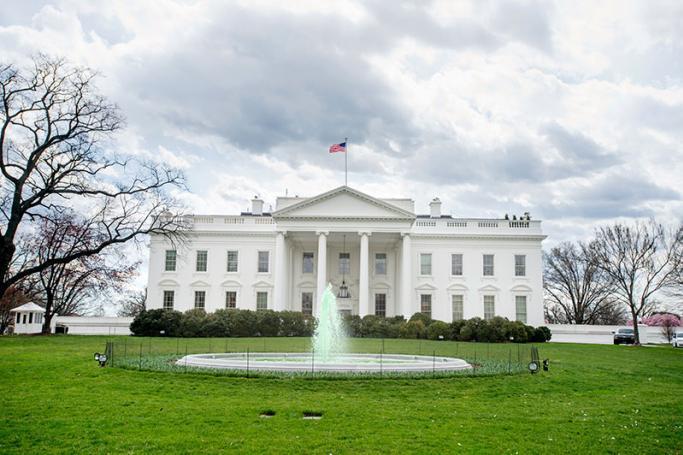 The fountain on the North Lawn of the White House is seen dyed green in Washington, DC, USA. Photo: EPA