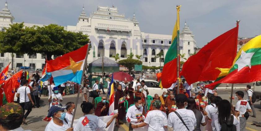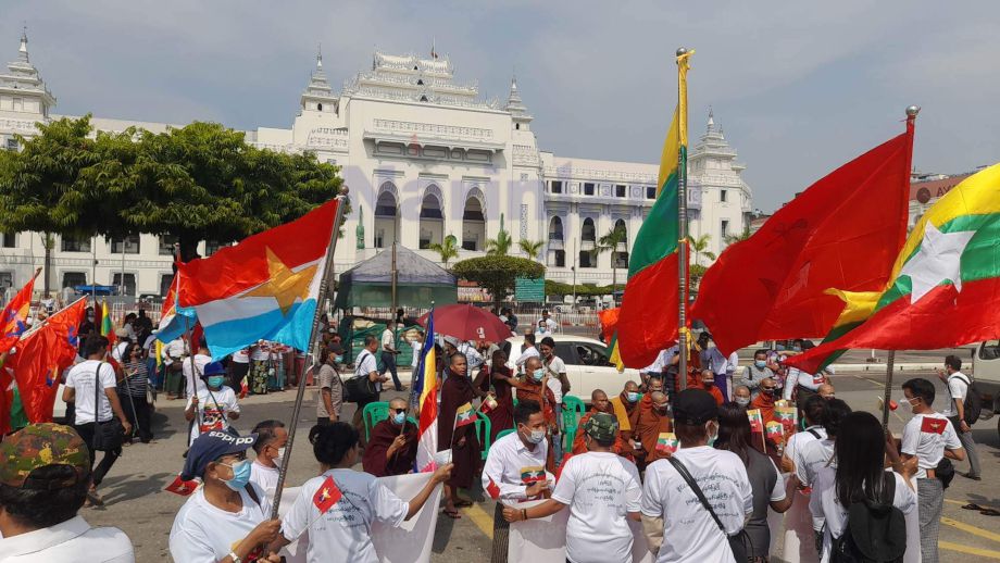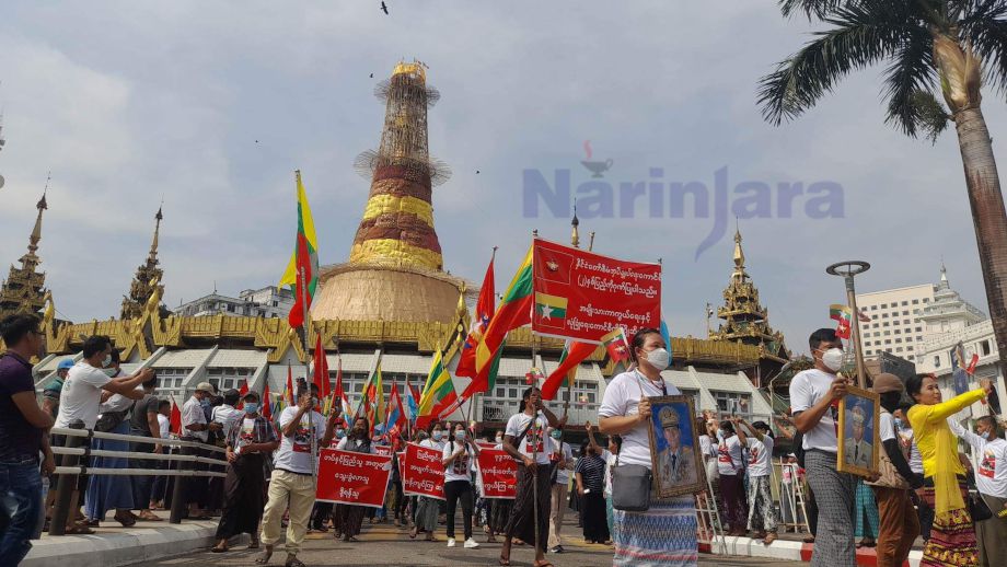 The organizers who led the demonstration rally in support of the coup in Yangon were led by Michael Kyaw Myint, Min Thar Gyi (aka) Aung San Oo and Daw Moe Moe Khaing, according to the invitation letter to attend the demonstration.