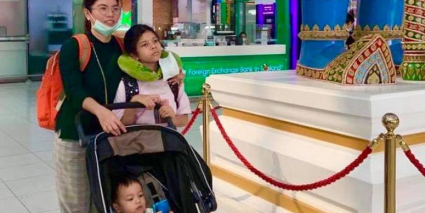 Hnin Zar Phyu and her 11-year-old daughter and one-year-old son flew to Switzerland at around 1:00 p.m. on Tuesday after the UNHCR negotiated their exit.