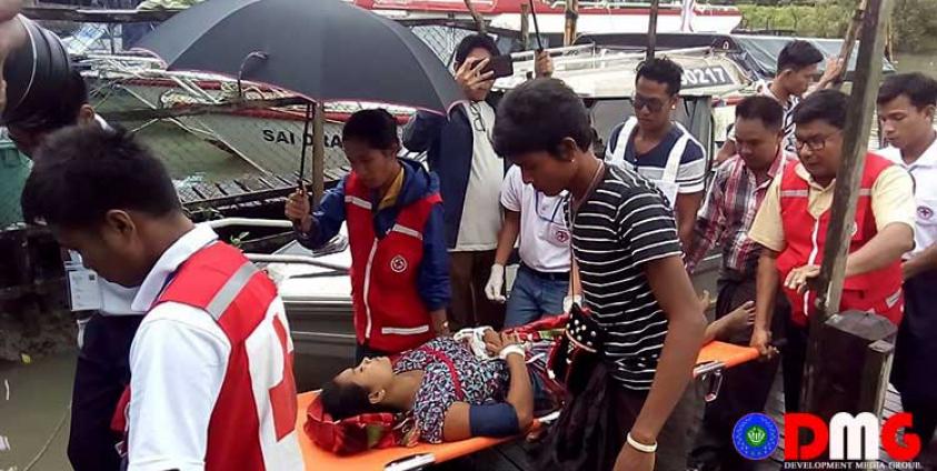 The injured woman was sent to Sittwe hospital on 23 August, but she was transferred to Yangon hospital because the bullet entered her back-bone and caused problems in her nervous system; she is numb in her lower body, aid workers said.