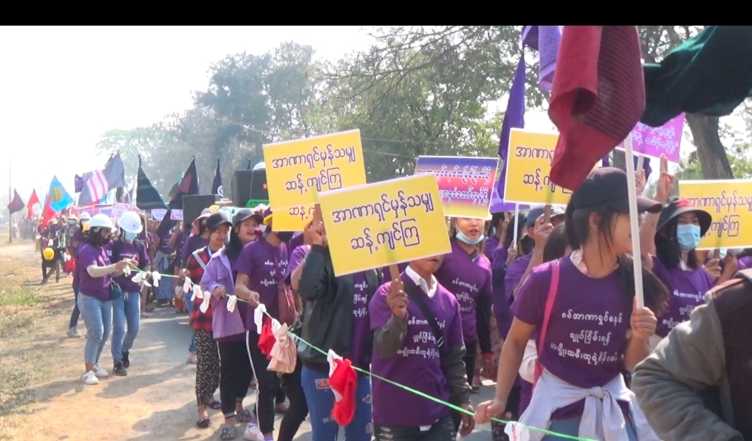 Thousands of females staged an anti-coup protest in Demawso Township in Kayah State on International Women Day which falls on March 8th.