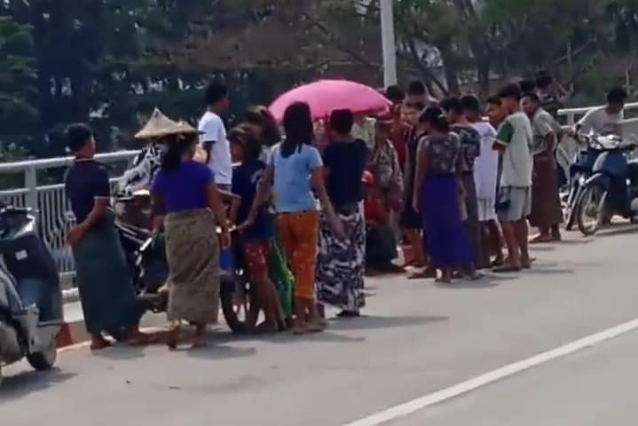 “A girl selling vegetables crossed the bridge and shouted that someone had jumped into the river. There were no people on the bridge at that time as the weather was so hot,” said a woman from Annthar village, which is located near the bridge in Minbya Township.