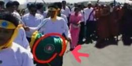 ရခိုင်ပြည်နယ်၊ သံတွဲမြို့ ကြိုဆိုပွဲ တစ်ခုတွင် ရခိုင်မင်္ဂလာစည်တော်၌ ကြံ့ခိုင်ရေးပါတီ တံဆိပ်ကပ်၍...