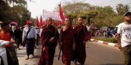 မွန်ပြည်နယ် မော်လမြိုင်မြို့တွင် ဖေဖော်ဝါရီ ၉ရက်တွင် ပြုလုပ်နေသော ကျောင်းသားသပိတ်ကို ဝန်းရံပေးသော...