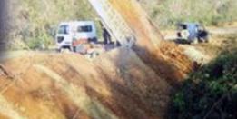 ဖောက်လုပ်နေဆဲဖြစ်ပြီး ခရီးသွားကားများ သွားလာခွင့်ပိတ်ထားသည့် မြဝတီ-ကော့ကရိတ်လမ်းသစ် တတန်ကူးနေရာတွင်...