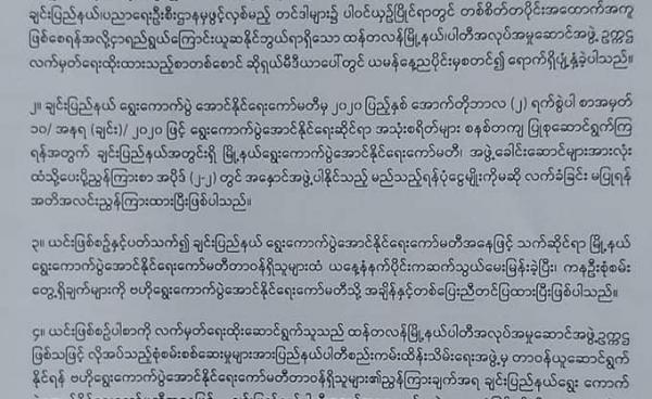ချင်းပြည်နယ် ထန်တလန်မြို့နယ် NLD ပါတီအောင်နိုင်ရေးအတွက် အလှူငွေထည့်ဝင်ကြသည့် ကုမ္ပဏီများအား ပညာရေးဉီးစီးဌာန၏ တင်ဒါလုပ်ငန်းအတွက် ထန်တလန်မြို့နယ် NLD...