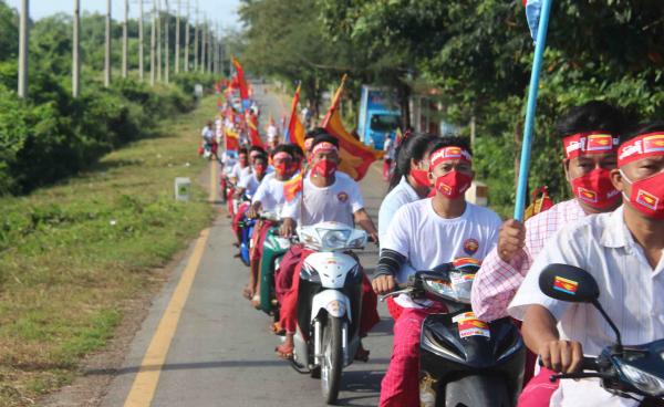 မွန်ညီညွတ်ရေးပါတီ ဝန်းရံသူများ မွန်ပြည်နယ် မော်လမြိုင်မြို့တွင် ပထမဆုံးပြုလုပ်သည့် အင်အားပြလှည့်လည် မဲဆွယ်မှု လူစုခွဲရန် သတိပေးခံရကြောင်း...