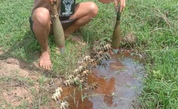 ရခိုင်ပြည်နယ်က တိုက်ပွဲအကြီးအကျယ်ဖြစ်ပွားခဲ့ရာ ရသေ့တောင်မြို့နယ်မှ ကျေးရွာတစ်ခုအနီးတွင် မပေါက်ကွဲဘဲကျန်နေခဲ့သည့် စစ်ကျန် RPG လက်နက်ကြီးကျည်...