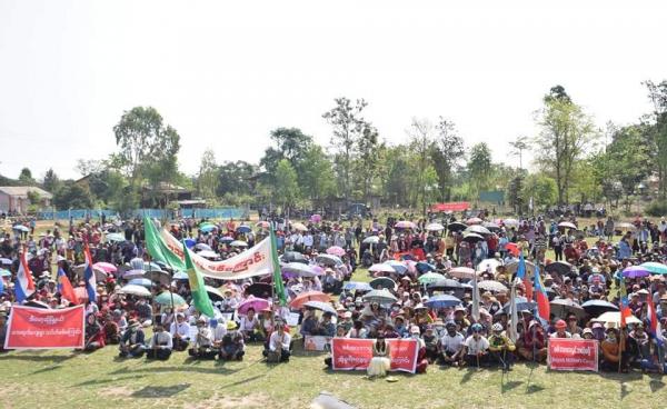 ကယားပြည်နယ်၊ ဒီမော့ဆိုမြို့နယ်လုံးကျွတ်သပိတ်ကို ဧပြီ ၁၉ ရက်က အို့ခူးရီကျေးရွာတွင် ဆက်လက်ပြုလုပ်ခဲ့ကြပြီး လူအင်အား...