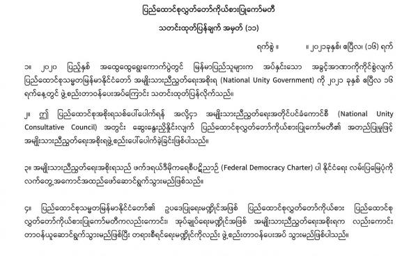 ကြားကာလ အမျိုးသားညီညွှတ်ရေးအစိုးရကို နိုင်ငံတကာမှ အသိအမှတ်ပြုရန်နှင့် အစိုးရ၏ ယန္တရားများကို ပြည်သူလူထုများအတွင်း လက်တွေ့အမြစ်တွယ်နိုင်အောင်...