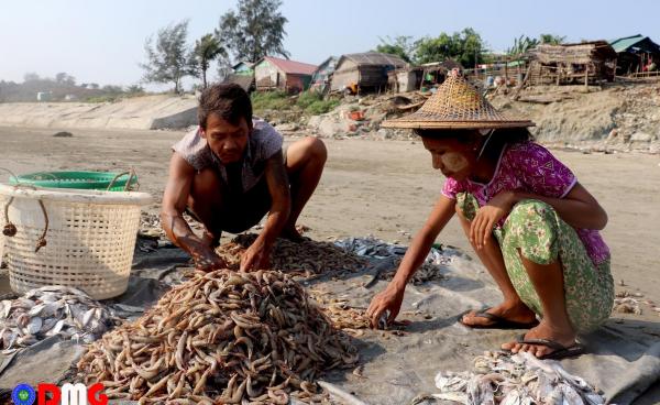 နိုင်ငံရေးမတည်ငြိမ်မှုများကြောင့် ကုန်းစျေးနှုန်းမြင့်တက်လာနေသော်လည်း ငါး/ပုဇွန်စျေးနှုန်းများမှာ စျေးကောင်းမရသည့်အတွက် ကျောက်ဖြူမြို့နယ်မှ ငါး/...