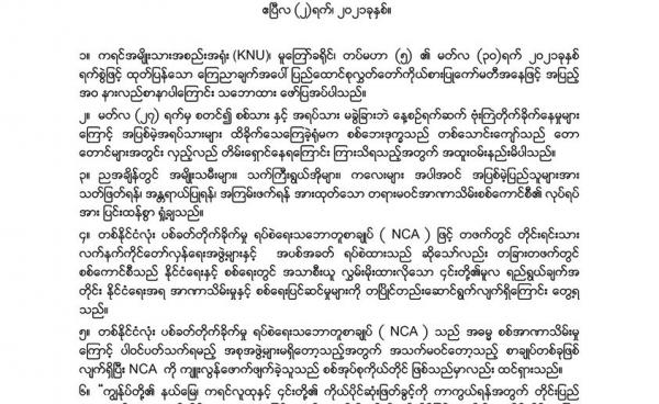 တစ်နိုင်ငံလုံး ပစ်ခတ်တိုက်ခိုက်မှုရပ်စဲရေး သဘောတူစာချုပ် NCA စာချုပ်သည် အသက်မဝင်တော့သည့် စာချုပ်တစ်ခုအဖြစ်သို့ ရောက်ရှိသွားပြီဟု...
