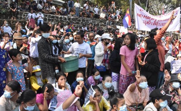 စစ်အာဏာရှင် ဆန့်ကျင်ရေးအတွက် ငြိမ်းချမ်းစွာ ဆန္ဒထုတ်ဖော်နေသော တောင်ကြီးမြို့မှ လူငယ်များအား ရဲတပ်ဖွဲ့ဝင်များ အကြမ်းဖက် ရိုက်နှက်က်ဖမ်းဆီးခဲ့ရာ...
