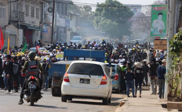 ချင်းပြည်နယ်၊ ဟားခါးမြို့တွင် မတ် ၁ ရက်တည်း ဆန္ဒပြပြည်သူများကို ရဲတပ်ဖွဲ့ဝင်များက မျက်ရည်ယိုဗုံးဖြင့် ပစ်ခတ်ဖြိုခွင်းခဲ့ပြီးနောက် သတင်းသမားတစ်ဦးနှင့်...