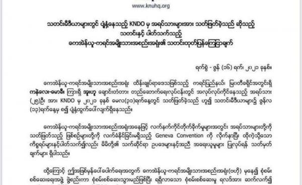 စစ်ကောင်စီတာဝန်ရှိသူများနှင့် သွားရောက်တွေ့ဆုံခဲ့သည့် KNDF အဖွဲ့ဝင်အချို့၏ အပစ်ခတ်ရပ်စဲကြောင်းကြေညာချက်သည် KNDF တစ်ဖွဲ့လုံးကို ကိုယ်စားမပြုကြောင်း...