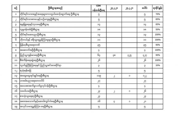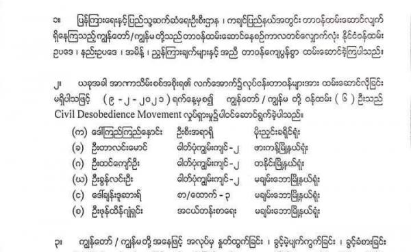 ကယား (ကရင်နီ) ပြည်နယ်မှာ Civil Disobedience Movement (CDM) ပါဝင်သဖြင့် အထွေထွေအုပ်ချုပ်ရေးဦးစီးဌာနမှ ဝန်ထမ်း ၅၉ ဦး တာဝန်မှ ယာယီရပ်ဆိုင်းခံရကြောင်း...