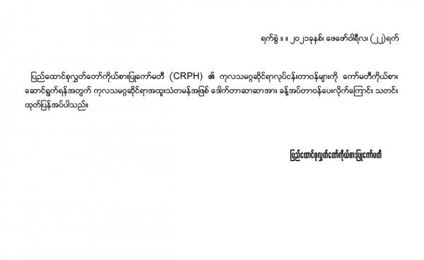 သပိတ်မှောက်ပြည်သူများအား ဖမ်းဆီးခြင်း၊ တားဆီးခြင်းများနှင့်ပတ်သက်၍ ကြားဝင်ဖြေရှင်းခြင်းကို ပြန်လည်လုပ်ဆောင်ပေးသွားမည်ဖြစ်ကြောင်း...