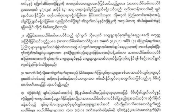 အာဏာသိမ်းစစ်ကောင်စီအဖွဲ့မှ ပြည်သူများရွေးချယ်တင်မြောက်ထားသည့် ရက်ကွက်/ကျေးရွာအုပ်စုအုပ်ချုပ်ရေးမှူးများအား တာဝန်မှရပ်စဲကာ ၎င်းတို့၏...