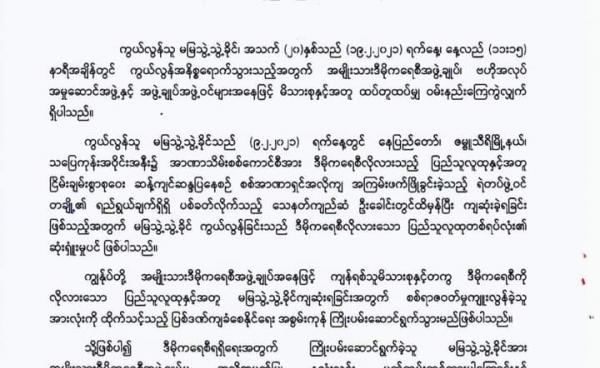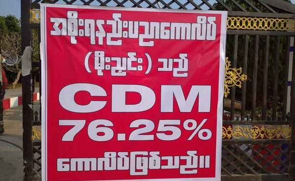 တပ်မတော်စစ်အာဏာသိမ်းမှုကို ဆန့်ကျင်ကန့်ကွက်သည့်အနေဖြင့် မြန်မာတစ်နိုင်ငံလုံးတွင် ဆင်နွှဲနေသည့် Civil Disobedience Movement (CDM) အပါအဝင်...