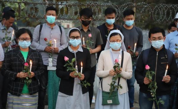 နိုင်ငံတွင်ဖြစ်ပေါ်နေသော အခြေအနေများနှင့်ပတ်သက်၍ ဖယောင်းတိုင်ထွန်းဆုတောင်းပွဲတစ်ခုကို မြစ်ကြီးနားမြို့၊ ဧရာရပ်ကွက်ရှိ ကျောက်စိမ်းတုံးအနီးတွင်...