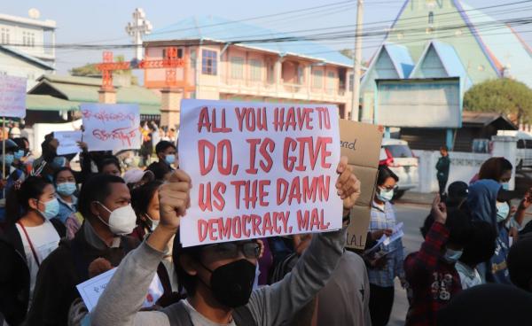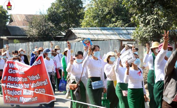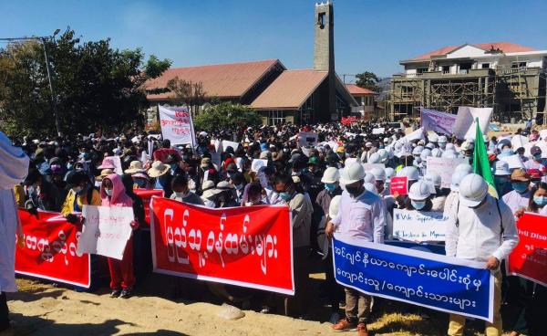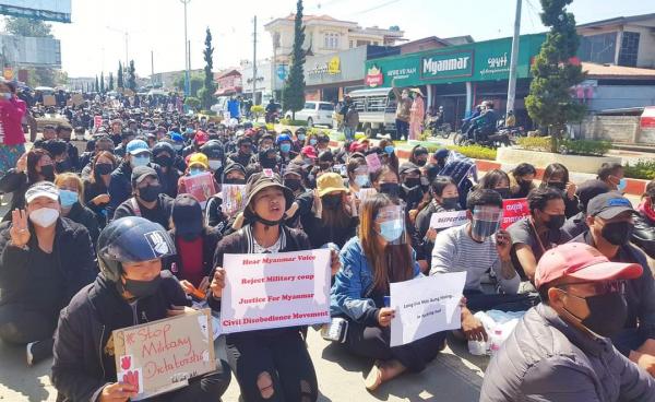 ချင်းပြည်နယ်တောင်ပိုင်း မင်းတပ်မြို့တွင် တပ်မတော်အာဏာသိမ်းယူမှု ဆန့်ကျင်ကြောင်း တတိယမြောက်နေ့ ဆန္ဒထုတ်ဖော်မှု ဆက်လက်ဆင်နွှဲခဲ့ကြပြီး...