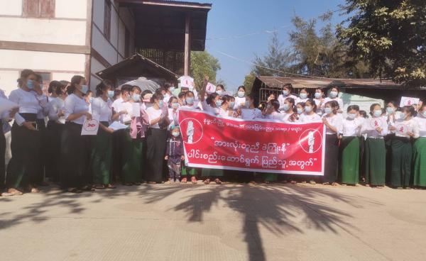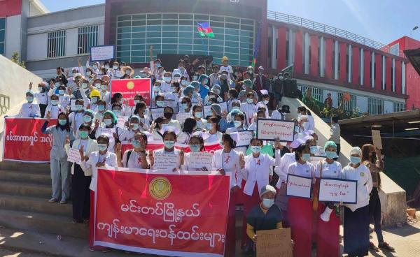 မိုးညှင်းမြို့တွင် အာဏာရှင်ဆန့်ကျင်သည့် ဆန္ဒပြပွဲများ ပြုလုပ်လျက်ရှိရာ ယနေ့ (ဖေဖော်ဝါရီ ၁၀ ရက်) တွင် ပညာရေး၀န်ထမ်းများ၊ ကျမ်းမာရေး၀န်ထမ်းများနှင့်...