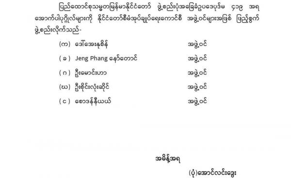 မြန်မာ့တပ်မတော်မှ နိုင်ငံတော်အာဏာကို ဖေဖော်ဝါရီ (၁) ရက် သိမ်းစဉ် ထိန်းသိမ်းခံရသူများအနက် ချင်းပြည်နယ် ဝန်ကြီးချူပ်နှင့် အစိုးရအဖွဲ့ဝန်ကြီးအများစု...