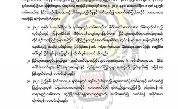 အာဏသိမ်းခြင်းအပေါ် ပြင်းပြင်းထန်ထန်ကန့်ကွက်ကြောင်းနှင့် ဖမ်းဆီးထားသော နိုင်ငံ့ခေါင်းဆောင်များ၊ နိုင်ငံရေးသမားများနှင့် လှုပ်ရှား...