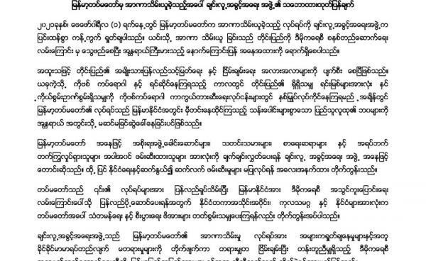 ဖေဖော်ဝါရီ ၁ ရက် နိုင်ငံတော်အာဏာကိုသိမ်းယူခဲ့သည့် တပ်မတော်၏လုပ်ရပ်အပေါ် တိုင်းပြည်ကို ဒီမိုကရေစီစနစ်တည်ဆောက်ရေးလမ်းကြောင်းမှ သွေဖြည်စေပြီး...