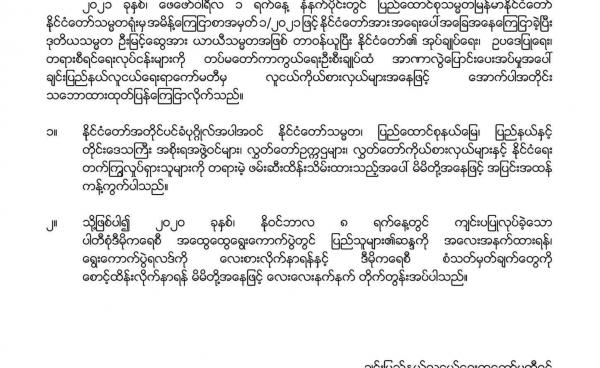 စစ်အာဏာသိမ်းမှု အောက်တွင်အလုပ်မလုပ်နိုင်ဟုဆိုကာ Civil Disobedience Campaign တွင် မွန်ပြည်နယ် ရေးမြို့နယ်မှ ဆရာဝန်များ ပါဝင်လာကြောင်း သိရသည်။...