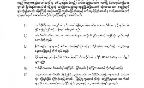 ဒီမိုကရေစီအရပ်သားအစိုးရထံမှ မြန်မာ့တပ်အာဏာသိမ်းယူခြင်းကြောင့် NCA နှင့် ငြိမ်းချမ်းရေးလုပ်ငန်းစဉ် ရပ်ဆိုင်းသွားနိုင်ကြောင်း...