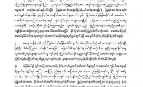 လာမည့် ချင်းပြည်နယ်အစိုးရအဖွဲ့၏ဝန်ကြီးချုပ်နေရာအတွက် နိုင်ငံရေး၊ စစ်ရေး၊ အုပ်ချုပ်ရေး အတွေ့အကြုံရှိသည့် ပြည်သူ့ကိုယ်စားလှယ်ကိုရွေးချယ်တာဝန်ပေးရန်...