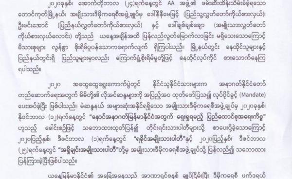 ရခိုင်လက်နက်ကိုင်အဖွဲ့က ဖမ်းဆီးသွားခဲ့သည့် လွှတ်တော်ကိုယ်စားလှယ်လောင်းသုံးဦးကို အမြန်ဆုံးပြန်လွှတ်ပေးရန် အမျိုးသားဒီမိုကရေစီအဖွဲ့ချုပ်...