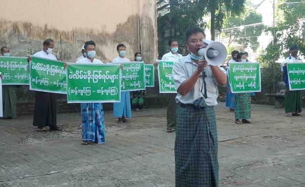 မွန်ပြည်နယ်တွင် ပြည်ခိုင်ဖြိုးပါတီဝန်းရံသူများက ပြည်ထောင်စုရွေးကောက်ပွဲကော်မရှင် လုပ်ဆောင်ချက်များကို ဆန့်ကျင်ကြောင်း စတုတ္ထမြောက်ဆန္ဒထုတ်ဖော်မှုကို...