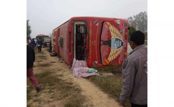 ကလေးမြို့မှ ရန်ကုန်မြို့သို့ မတ်လ ၄ရက်နေ့ နေ့လည်တစ်နာရီတွင် ထွက်ခွာသည့် High Class အမြန်ယဉ်မှာ ရန်ကုန်မြို့အဝင် ၇၇ မိုင်တွင် တိမ်းမှောက်သွားကြောင်း...