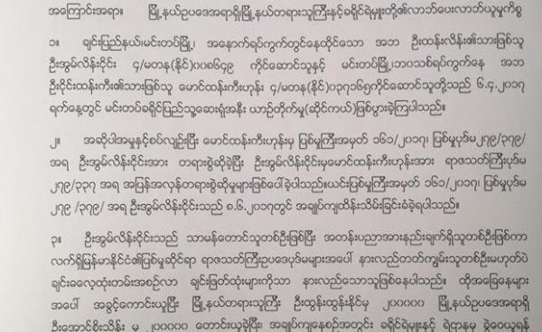 မင်းတပ်မြို့နယ်ဥပဒေအရာရှိ၊ မြို့နယ်တရားသူကြီးနှင့်ခရိုင်ရဲမှုးတို့သုံးဦးအား အမှုသည်များထံမှ လာဘ်စားသည်ဟုဆိုကာ...