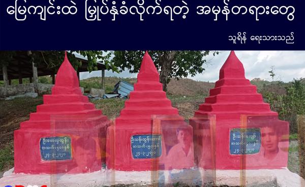 အနီရောင်ဆေးခြယ်ထားတဲ့ အရွယ်တူ အုတ်ဂူသုံးခုဟာ တစ်ခုနဲ့တစ်ခု နီးကပ်စွာနဲ့ ကျေးရွာသုဿန်မြေပေါ်က ကုန်းမြင့်လေးထက်မှာ ထင်ရှားစွာတည်ရှိနေပါတယ်။...
