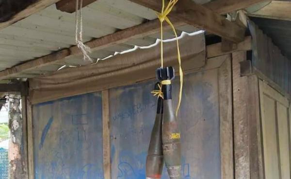 ဉာဏ်ဟိန်း — ရခိုင်ပြည်နယ်၊ ပုဏ္ဏားကျွန်းမြို့ရှိ ကွမ်းယာဆိုင်ရှေ့တွင် မပေါက်ကွဲသေးသည့် ဗုံးသီးနှစ်လုံးအား ချိတ်ဆွဲထားသဖြင့် ဒေသခံများမှာ...