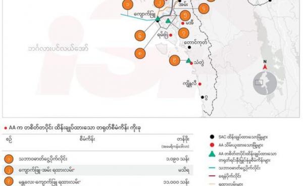 ရခိုင်ပြည်တွင် တရုတ်၏ ရင်းနှီးမြှုပ်နှံမှုစီမံကိန်း ၁၁ ခုရှိသည့်အနက် စီမံကိန်း ၉ ခုကို အာရက္ခတပ်တော်(AA)က တစိတ်တပိုင်း ထိန်းချုပ်ထားပြီဖြစ်ကြောင်း...